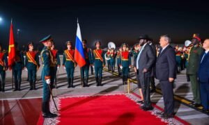 وحسب البيان اطلعتها”واجومانيوز” ان الرئيس وصل الى موسكو وكان في استقباله نائب وزير خارجية روسيا اندريا رودنكو يوروفيتش ، وسفير جنوب السودان لدى روسيا الباشمهندس شول تونق ماياي،بجانب سفراء الدول الأفريقية،