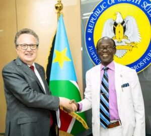 التقى السفير الأمريكي لدى جنوب السودان، مايكل أدلر، مع نائب الرئيس البروفيسور جيمس وان إيغا اليوم ، وبحثا تنفيذ اتفاق السلام المنشط 2018.