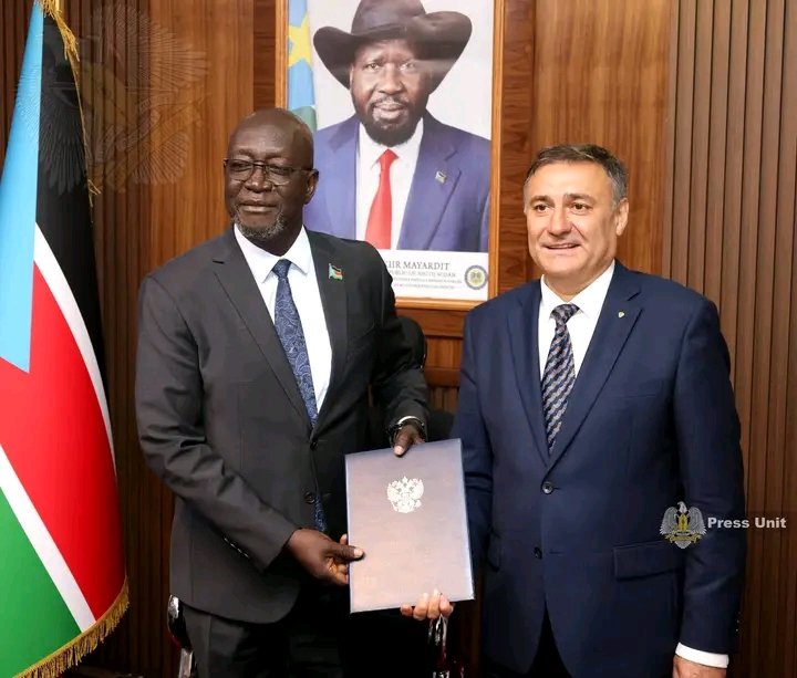 استقبل وزير شؤون الرئاسة، أفريكانو ماندي ، السفير الروسي لدى جنوب السودان، ألكسندر كوسمودميانسكي، حيث بحث الجانبان سبل تعزيز العلاقات الثنائية بين جوبا وموسكو.